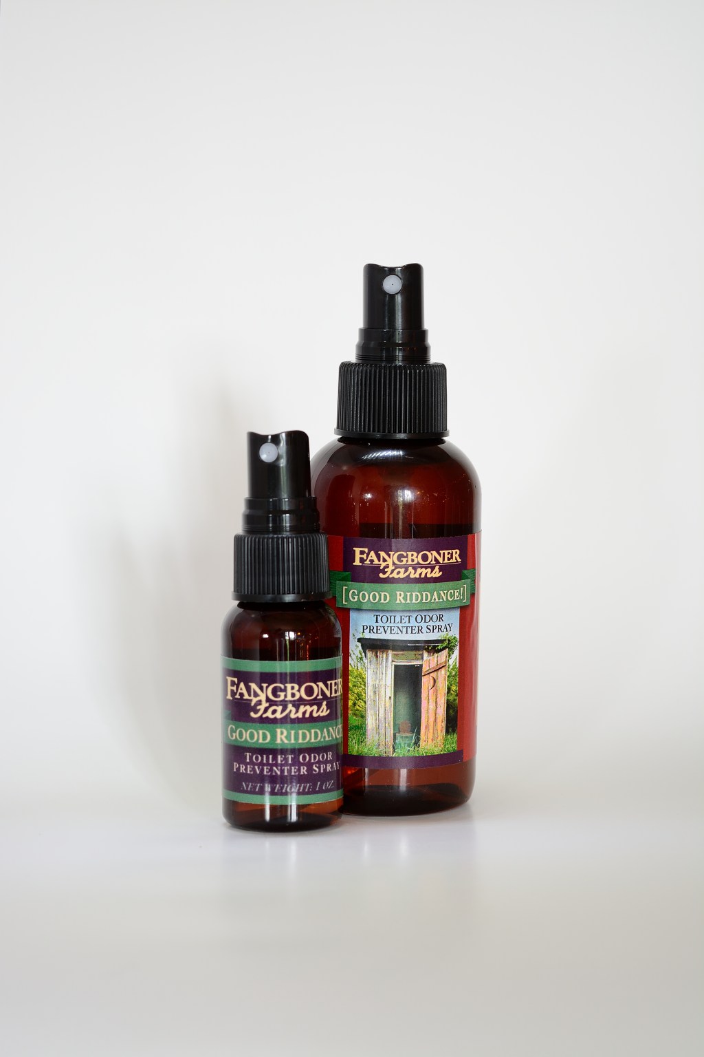 Our toilet odor prevention spray is made with distilled water and essential oils for a pleasant-but-not-overwhelming scent. To use, simply spray it in the toilet before you do your business! It will be like you were never there. $3 for large. $2 for small.